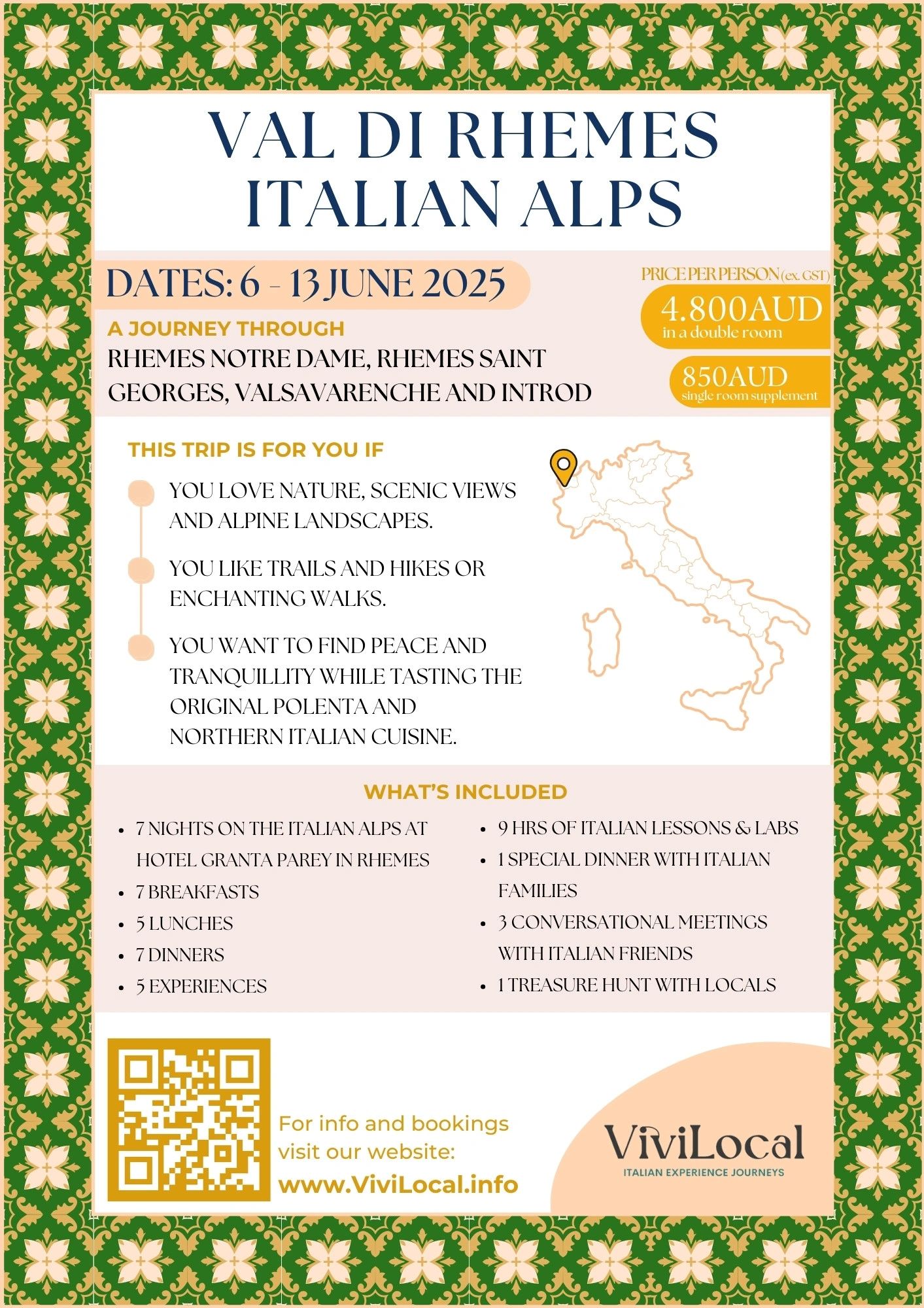 Visit Rhemes Notre Dame, Introd, Rhemes Saint George, Mont Blanc.